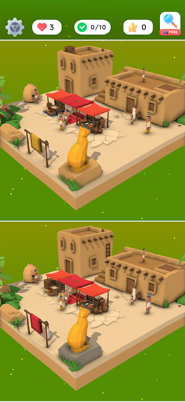 準備好迎接《差異 - 隱藏物品》中的有趣挑戰吧!探索來自世界各地的精彩 3D 場景,如叢林、太空、家園、埃及等。你的使命?求出兩張相似圖片之間的差異。