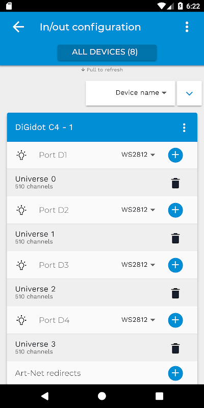 有了這個程序,你可以設置的DiGidot C4。可以調整宇宙(LED光IC芯片),以優選的輸出的數量,LED的類型,並將它們路由。您是否使用多個DiGidot C4的菊花鏈或網絡?他們的名字你所希望的方式,給他們一個唯一的IP地址很容易認出他們在您的項目!