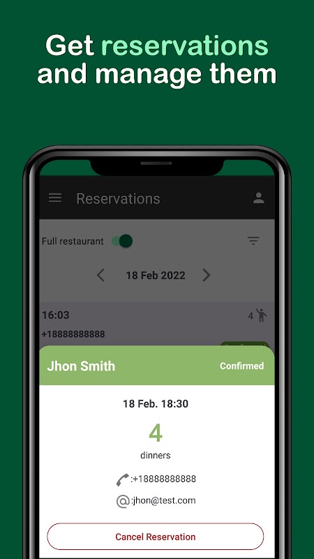 在您的在線數字菜單中從您的客戶那裡獲得預訂並進行管理。您可以在應用程序中指定預訂配置。