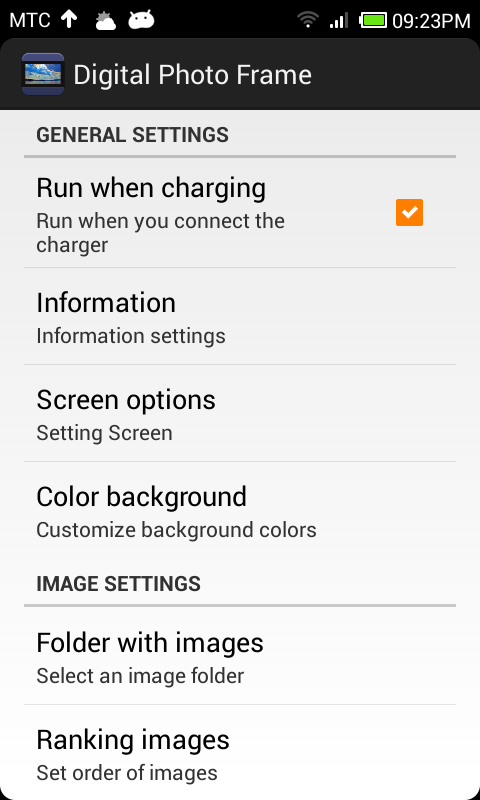 有了这个程序,你会变成你的设备变成一个数码相框和清醒,享受自己喜爱的照片或图像与音乐。