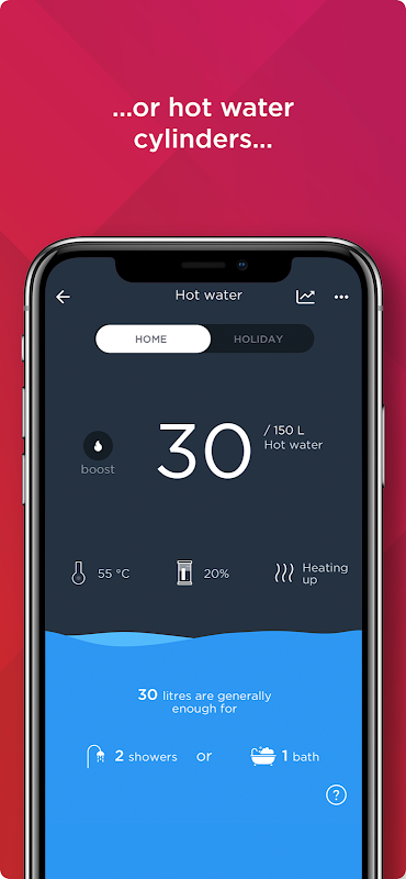 - 控制熱水。查看設定溫度下的可用水量(需要相容的 Dimplex Quantum 水缸 QWCd)。