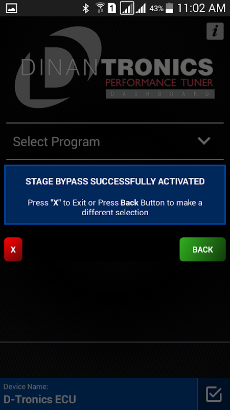現在你DINANTronics性能調諧器的功率可以通過您的手機或配備藍牙的移動設備進行解鎖。無論你是想簡單地將設備置於旁路出於測試目的,測功機測試,或前/運行後,或階段/圖之間切換時,DINANTronics儀表盤可以容納它。通過一個易於使用的界面,您迪南調校的BMW車輛用手指的滑動馴服和侵略性之間可以切換。