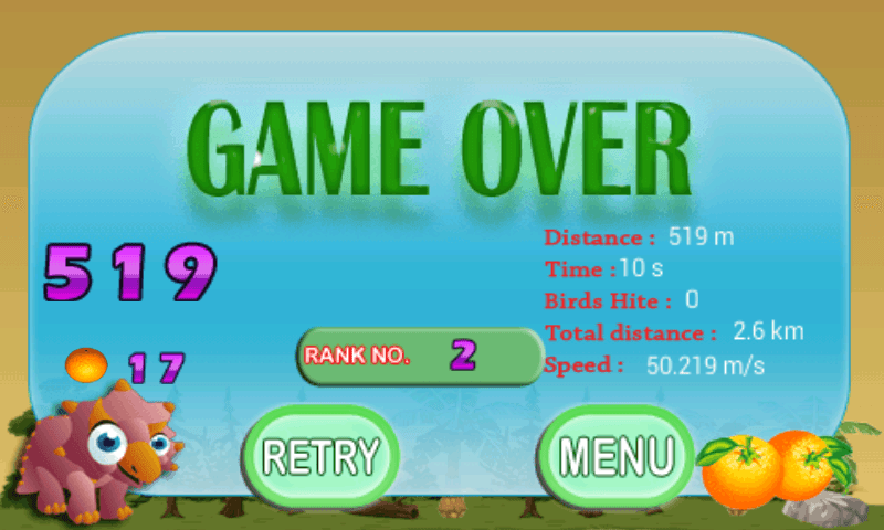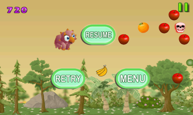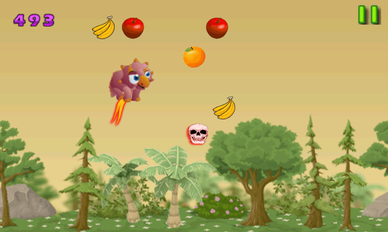 And there are few dangers also hidden in between the fruits. There is a lethal black magic skull with which, if dinosaur collides, will get hurt. So be careful of this dangerous black magic, and steer dinosaur accordingly.