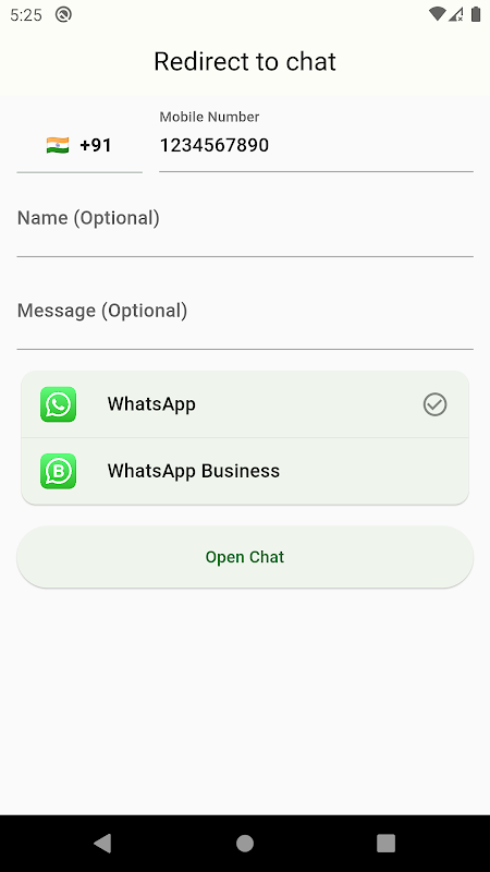 通過提供手機號碼重定向到 WhatsApp 或 WhatsApp Business 聊天