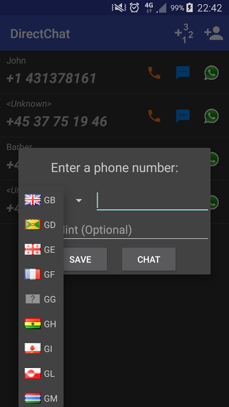 - Write messages (SMS + WhatsApp) to phone numbers with any country code/area code