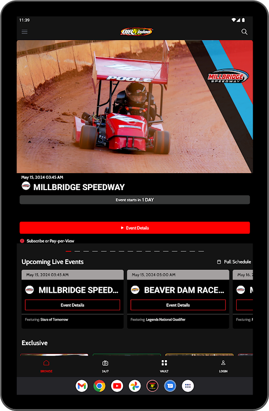 DIRTVision 是您首屈一指的泥地賽車廣播提供商。從現場比賽報導到歷史比賽,這是您一站式獲得 The Greatest Shows on Dirt 的獨家視頻報導。 Sprint Cars、Lat Models、Modifieds、Karts、Micro Sprints 和 Midgets——我們在 DIRTVision 上擁有最好的!