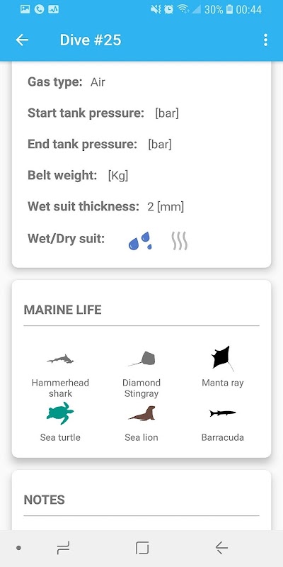 ✓數字潛水日誌 - 包括記錄潛水中發現的海洋生物的領域(在大多數潛水日誌應用程序中我還沒見過的東西)。