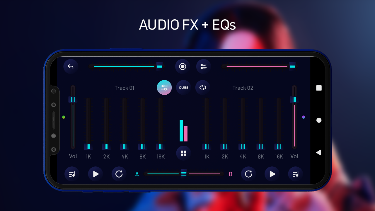 DJ Mixer 是一款具有真實 DJ 外觀和許多功能的音樂播放器。您可以無縫地在兩個軌道之間交叉淡入淡出,並更改速度和實時音高。