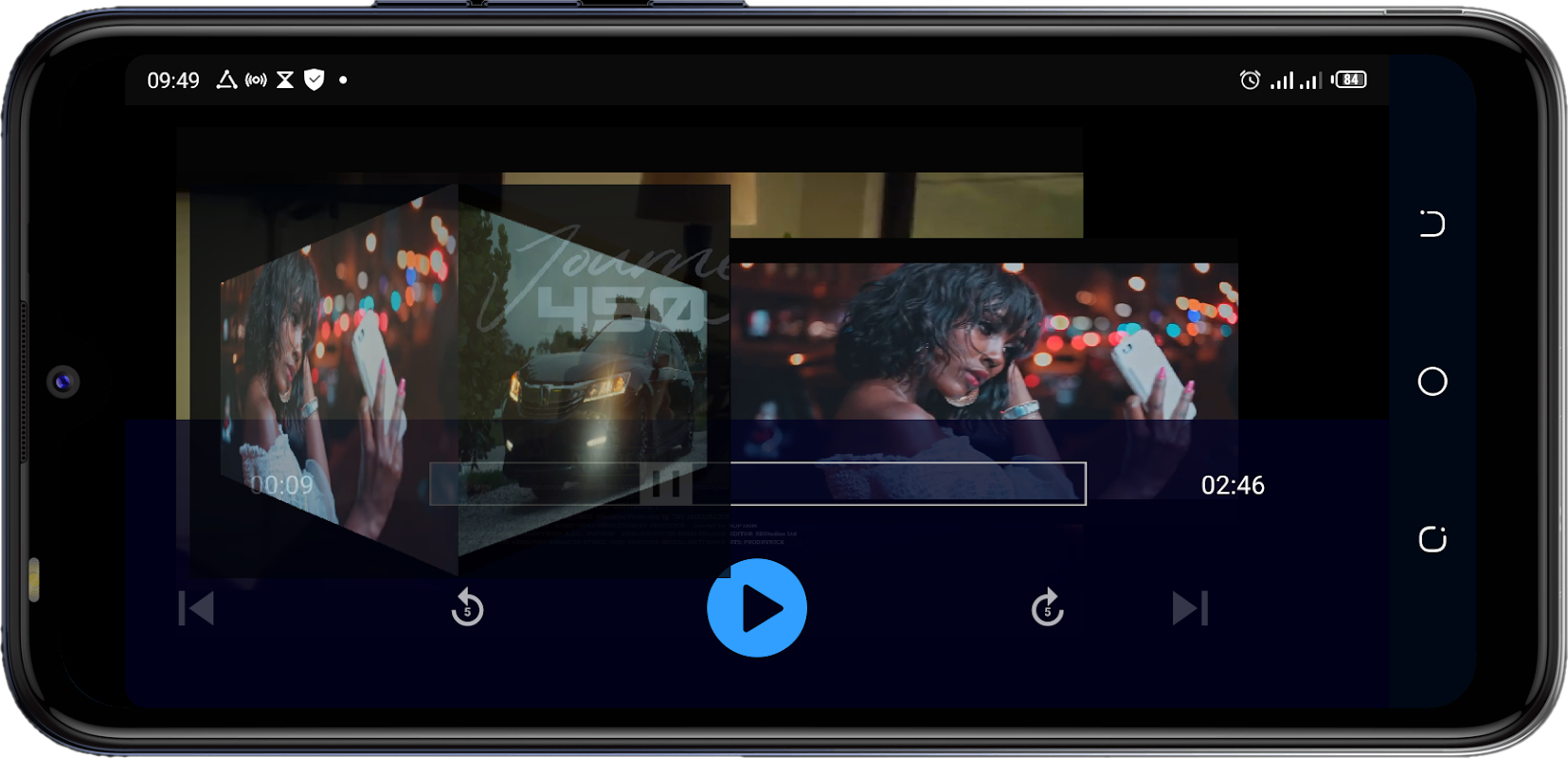 DJ 視頻自動混音器是一款視頻播放器,可作為專業 DJ 混音器應用程序在您的設備上播放視頻。 DJ Video Mixer 能夠在轉換過程中自動從一個視頻流暢地播放到另一個視頻,並具有 3D 效果。在交叉漸變器的幫助下,您也可以手動完成。在此虛擬 DJ 混音器中,您可以瀏覽和播放圖庫中的音樂視頻,並將它們組織在播放列表中。當您單擊“下一個”時,虛擬 DJ 混音器通常會自動將視頻淡入淡出到另一個與視頻效果同步的視頻,或者在設定的持續時間後自動淡入淡出。