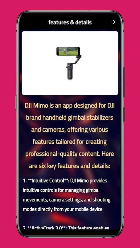 dji mimo 6 使用者指南提供直覺的控件,可直接從行動裝置管理雲台運動、相機設定和拍攝模式。