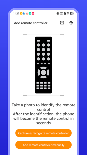 Supports adding a remote control via mobile phone. Supports remote control recognition through photos. Supports manual remote control addition. Supports remote control saving. Includes air conditioners, set-top boxes, televisions, TV boxes, projectors, etc.