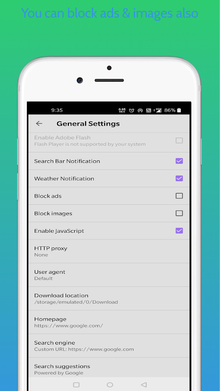 • Turn on ad blocking by visiting Settings
