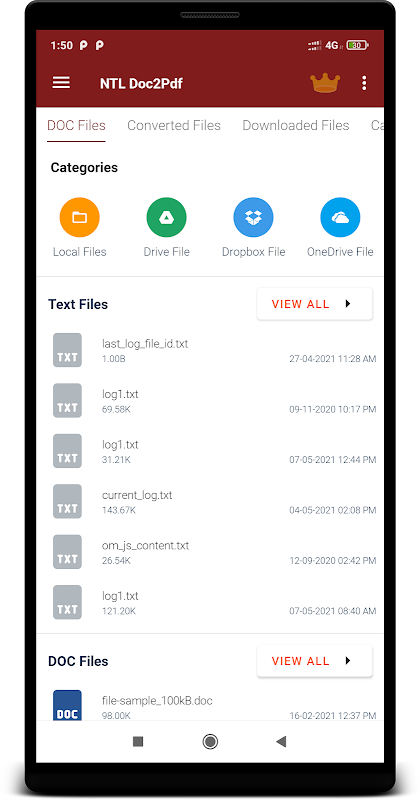 應用程序提供了將PPT,DOC或DOCX和TXT文件轉換為PDF文件的功能。還可以管理文檔文件和文件夾。從雲端獲取文件連接Google雲端硬盤,獲取文檔並將其轉換為PDF。