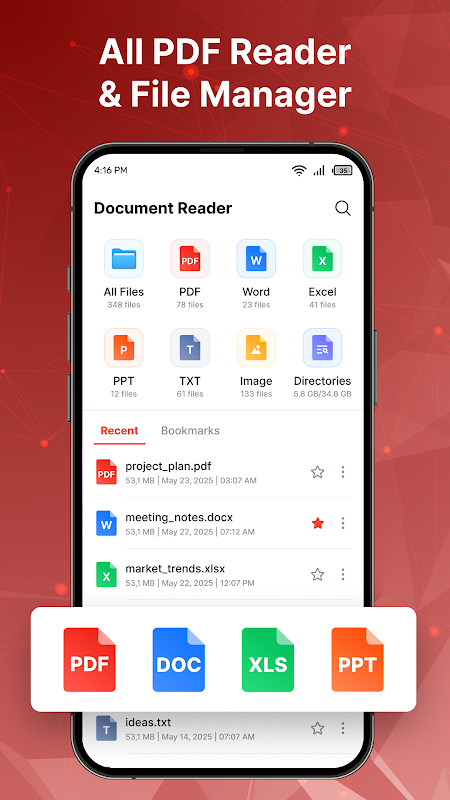 無論您處理的是PDF、Word、Excel、PowerPoint、TXT或CSV文件,文件閱讀器:PDF編輯工具都能讓您在一個簡潔易用的應用程式中快速流暢地存取所有文件。無需在多個工具之間切換——您所需的一切盡在此處。