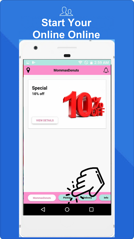 This is a Donuts online order App for pickup and delivery service. Customers who have downloaded this app can see Donut shops around me based on the Map and use the pick-up service and delivery service directly from the app.