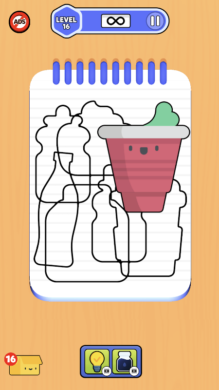 發現筆記本上塗鴉的隱藏物。點擊以填滿和顯示物件。