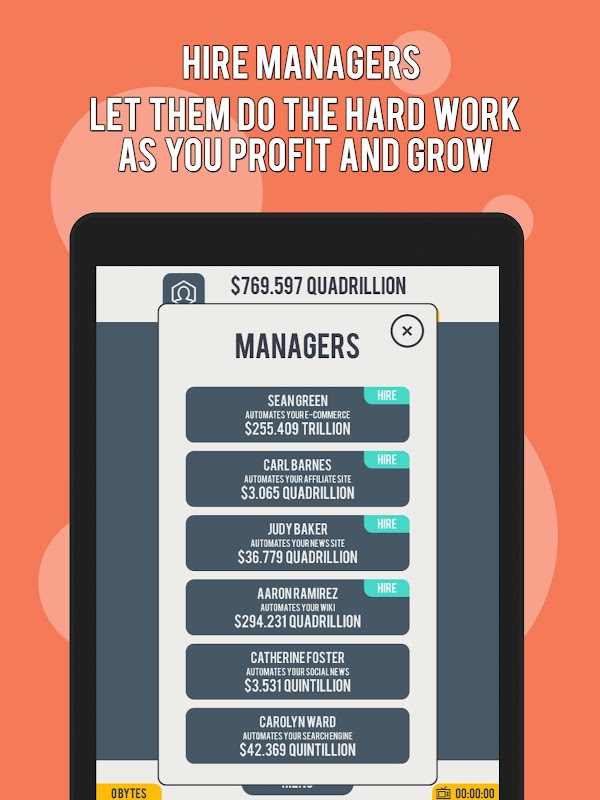 有足夠的錢開始買你的第一個域名為您的個人網站,並建立25個網站,一個巨大的組合!升級他們,獲得的利潤和速度倍增,聘請經理人來經營他們坐下來發洩的獎勵!