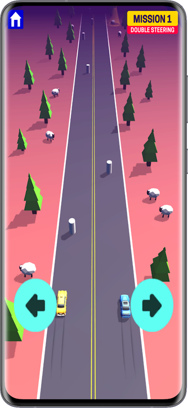 DOUBLE STEERING”似乎退出了簡單的遊戲,但事實並非如此。障礙太多。你需要保持專注並註意每一個障礙,並且不要忘記你駕駛的是兩輛車而不是一輛