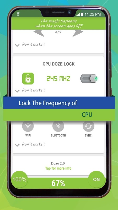 Not only apps you can hibernate unnecessary settings like WIFI, Sync, bluetooth to save even more battery of your smartphone. Doze - Battery Saver App also improves performance of your android device by cooling down CPU.