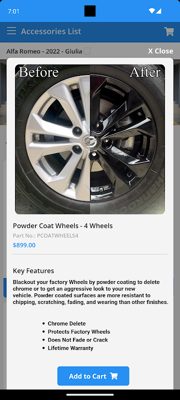 客戶可以搜尋年份、製造型號並查看特定於車輛的配件。