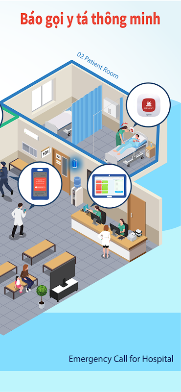 - 病人透過病房內的外圍設備呼叫護理人員。