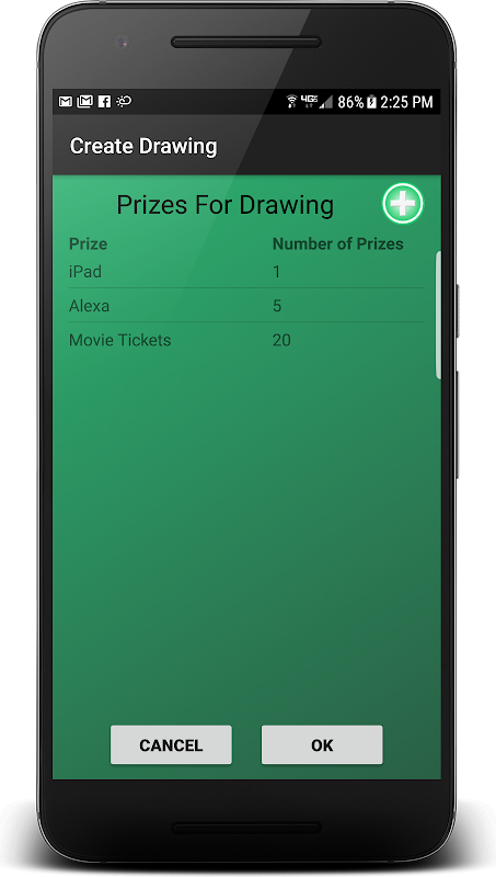 可以定義獎品的任何數目和數量及圖紙將自動分配的獎金,以各圖。