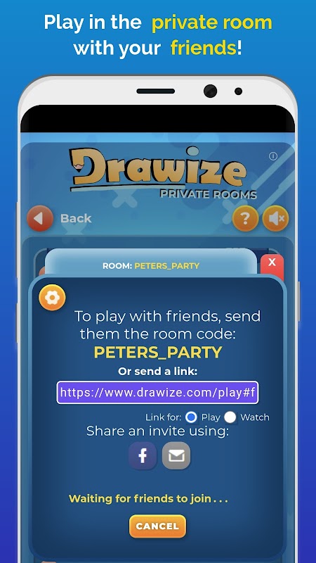 Drawize-繪畫和猜謎是一款有趣的在線多人繪畫遊戲。它受到著名的Pictionary遊戲的啟發,但是這次您可以與您的朋友,世界各地的其他玩家在線玩,或者只是猜猜繪畫或畫些東西進行練習!