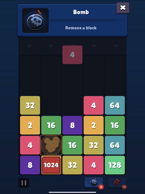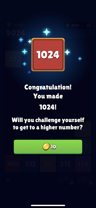 掉落數字與2048合併! 1024 2048 4096 8192 16384...如果可以的話還有更多😉