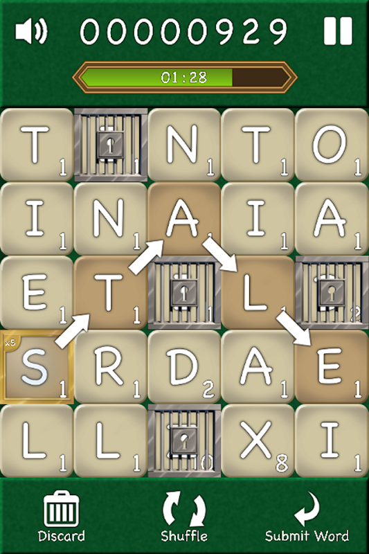 Dropwords 2字調查拼圖,結合拼字遊戲和驚奇的一些元素。有效的話刺激你的分數和日益減少的定時器;使用字母消失,新的從上面掉落。