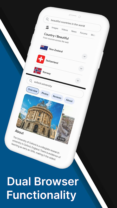 透過在單一螢幕上使用兩個瀏覽器,您可以將工作速度提高一倍,從而節省寶貴的時間。如果您正常瀏覽,您的搜尋記錄將保存在應用程式內。體驗私人瀏覽器,進行安全和私密的搜尋。