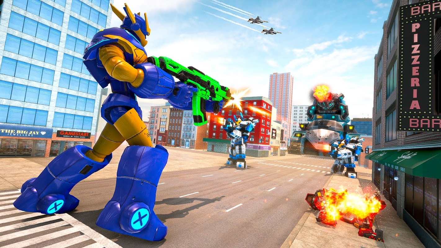 Just imagine, in this robot transforming game alien robots have landed on the universe with the evil acceptance of destruction in the new city. robot car transforming game you have to achieve the role of super mech warrior as the last hope to save the citizen of the animal robot game. Come forward to stop these monstrous forces of robot car games. robot car transforming game appreciates your superhero abilities to compete against these undesirable powers of flying robot games. This car robot game is best for everyone; it means there is no age constraint to experience mega wars. robot transforming game with new concepts and HD graphics is one of the best car wali games.