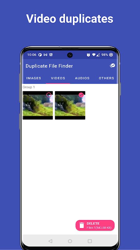 重複文件刪除器,可以掃描整個手機,並找到任何圖片,照片,音頻歌曲,視頻 和所有文件的相似文件其他類型的文件供您使用,然後刪除這些文件並清理手機。