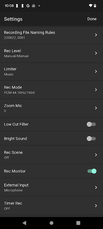 這允許在通過藍牙耳機監控錄音的同時調整錄音電平。