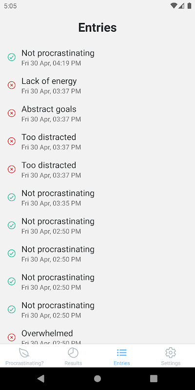 4️⃣然後,該應用程序將向您顯示拖延的主要原因,並在您每天使用時對其進行評分