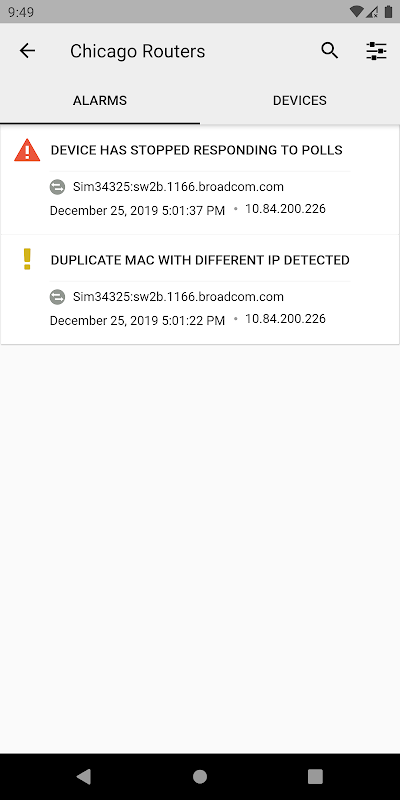 DX Spectrum Mobile應用程序輪詢Spectrum並檢索“警報和設備”列表。