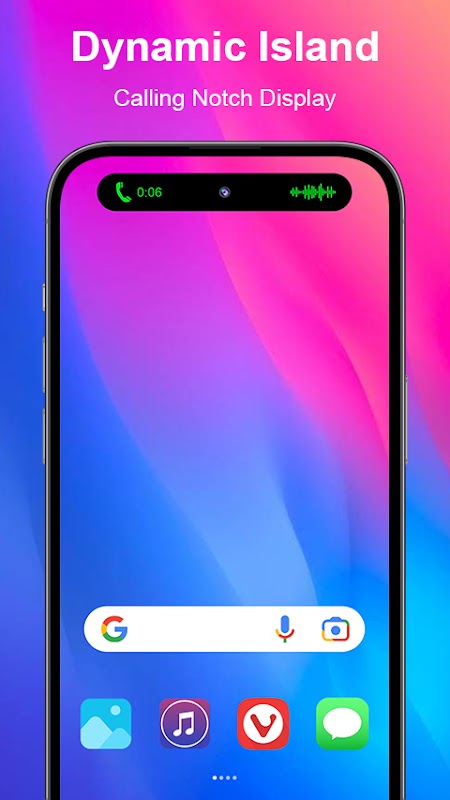 Dynamic Island 也是一個交互式的,您可以通過單擊並按住來擴展和縮小動態島缺口 iOS 16。它將讓您體驗手機14動態島到您的Android的功能。以動態島嶼效果顯示的通知比以往任何時候都更加安全、簡單和美觀。在這裡,您將花費不到一分鐘的時間在您的 android 上激活流暢的動態島效果,該效果可在任何類型的移動設備上順利運行。