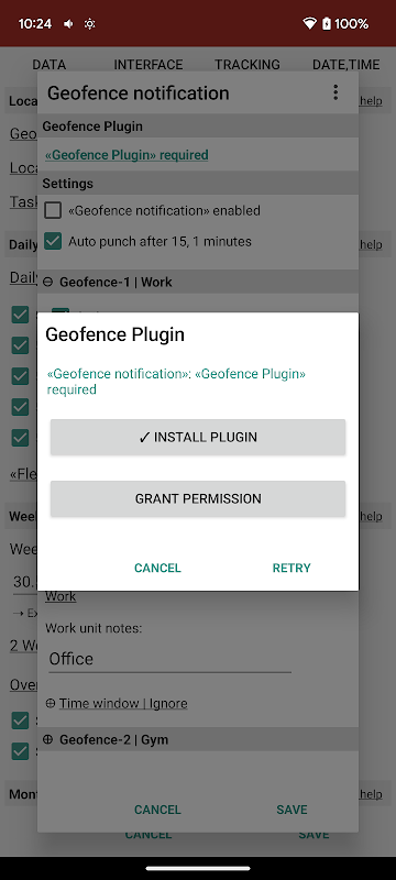 時間記錄應用程序的地理圍欄插件