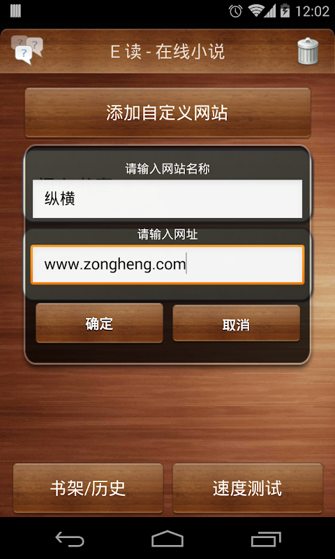可以自定义添加喜欢的网站(只要输入小说网站首页网址即可)