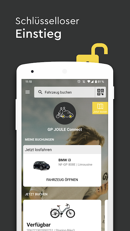 智能,靈活,快速-從預訂到開始旅程,您都可以使用智能手機輕鬆完成。無論是在家中還是出門在外,該應用程序都提供了可用車輛的概覽,並帶有許多其他選項。