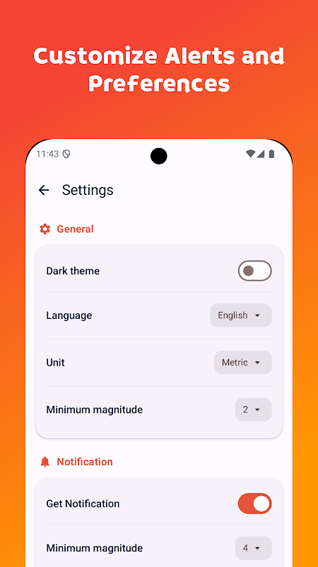 • 位置(可選):用於顯示附近的地震並個性化警報半徑。