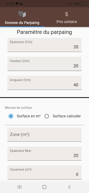 EasyConstruct est une application simple pour le calcul des matériaux de construction nécessaires pour construire une maison.