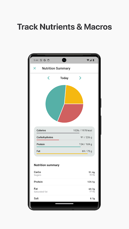– 精確控制卡路里攝取量:最準確地追蹤您的卡路里、蛋白質、脂肪和碳水化合物攝取量,而不會分散您對最重要事情的注意力 - 實現您的目標。