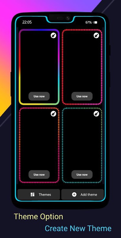 🔵 選擇您想要的不同形狀和類型的邊框以及您想要的手機邊緣淺色的樣式和動畫