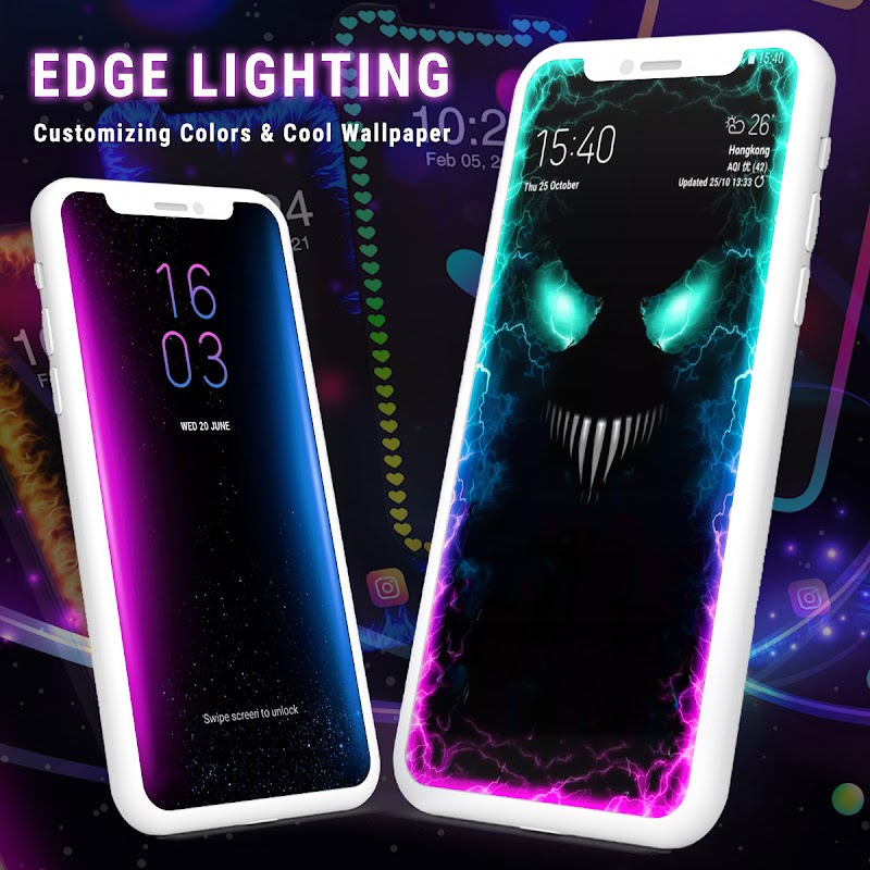 根據您的選擇自定義 EDGE 照明 - 更改顏色、調整寬度、EDGE 照明邊框的類型、顯示槽口設置、高清壁紙和魔法邊緣照明。