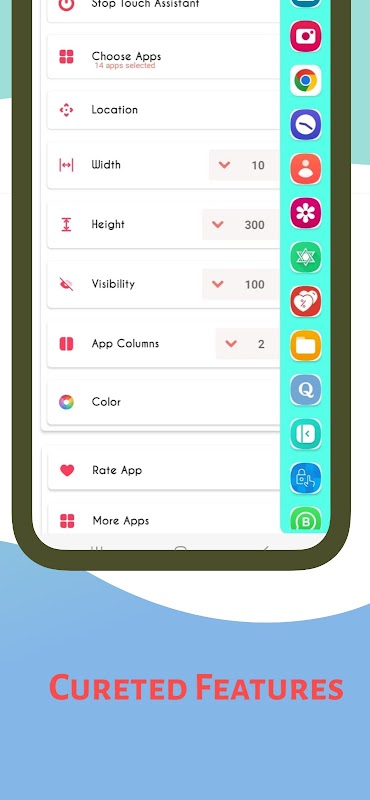 根據您的需要更改顏色、大小、寬度或高度,以便從屏幕邊緣輕鬆快速地訪問您的應用程序。