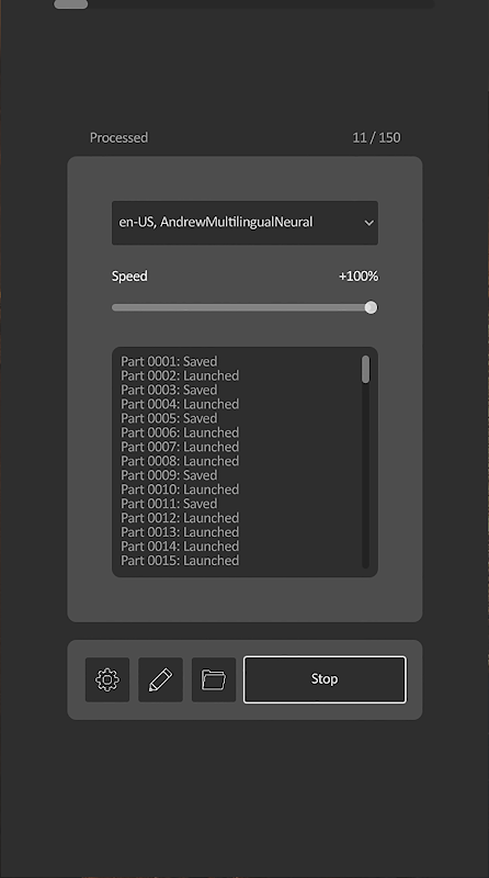 - New voice selection window - Bitrate selection in settings - If there is only one converted part of the book, then the serial number will not be added to it - Added support for CSV files. Each line is saved in a separate file. In the CSV file itself, you can specify Voice, Speed, Tonality, Text, Output file name. If the file is not formatted correctly, then the settings set in the program are used.