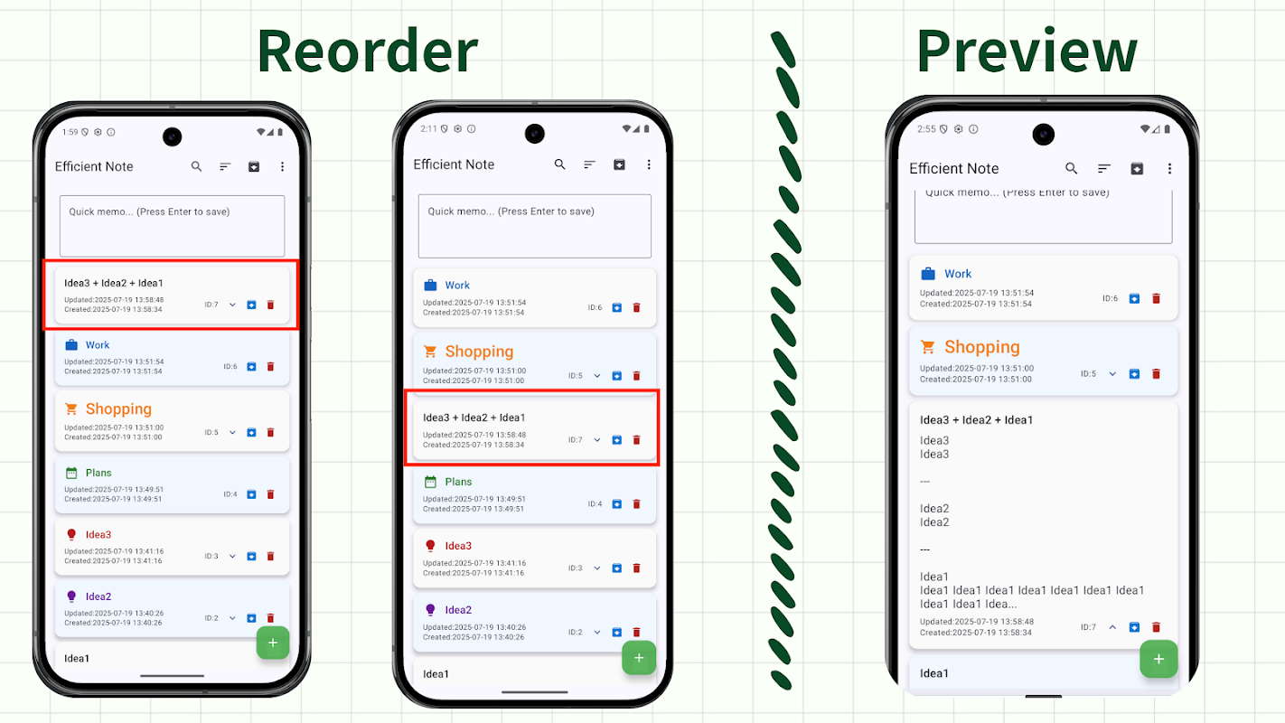 - 拖放重新排序:直覺的操作,可依思路重新排列備忘錄順序