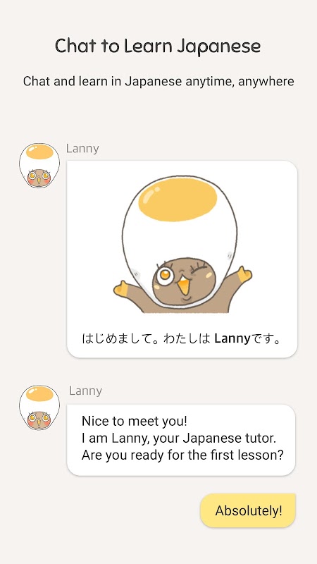 Eggbun teaches you Japanese in a simple conversational style. You quite literally listen and “chat” with your tutor Lanny, the cute little character that guides you along to learn the Japanese language and culture.
