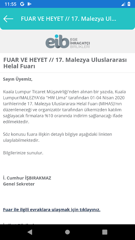 愛琴海出口商協會的官方移動應用程序。與此應用程序,你可以不成為我們聯盟的成員使用,我們與會員發送通知推送通知可以根據主題和運輸頻率定制,訓練我們都知道,網上交易可以查看文檔或文件和成員的各部位的狀態欠你問話,你可以用信用卡支付。你可以得到即時解答您的問題在現場支持。