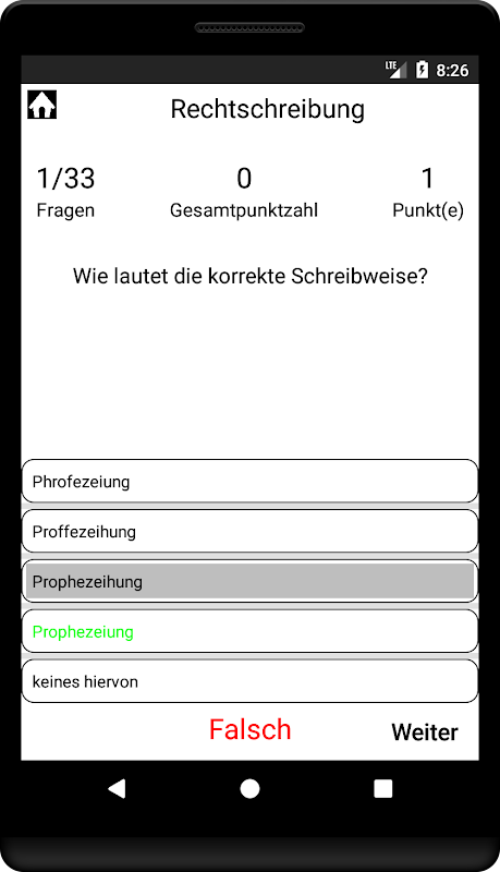 2.您還可以在菜單項“測試考試”下對所有主題進行考試。這裡,隨機生成器選擇了50個問題。